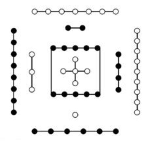 由上表我们可知,五行不单对应时间、方位、颜色、味道、形状、脏腑,还对应着数字,即水16,火27,木38,金49,土510。也就是,12345应该对应着水火木金土。上述所有的对应关系都不能乱,是唯一对应。五行所对应的数字当然也不能乱。 2.五行与数字对应的根源 五行与数字的对应关系源于更古老的河图文化。《易•系辞传》有曰:“河出图,洛出书,圣人则之”。下面是历史上流传下来的河图: